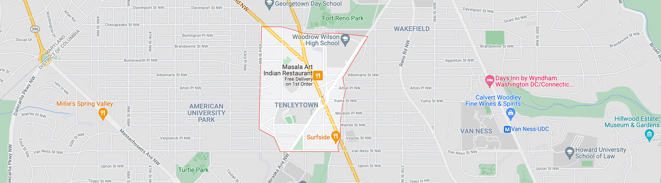 The historic Tenleytown neighborhood blends a small-town feel with a vibrant array of urban amenities along Wisconsin Avenue. The thriving commercial district features more than 120 storefront businesses, including restaurants, salons, fitness studios, national retailers, and iconic locally owned shops. From entertainment to shopping, education to healthcare, petcare to childcare, and everything in between, you can find it all right in the heart of Tenleytown.